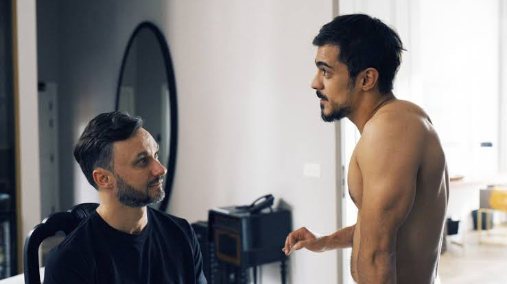 今作の主人公はマリユス(Eimutis Kvoščiauskas エイムティス・クヴォシュチャウスカス)という男性だ。彼は国際派の辣腕弁護士として、富も名声も手に入れた存在だ。同時に彼はゲイでもあり、リトアニアにおけるLGBTQが置かれる立場は楽観視できるものでもないが、彼が持つ富、そしてシスジェンダーの中年白人男性という特権を行使することで、順風満帆な日々を送っている。ある日、彼はネット上でアリ(Doğaç Yıldız ドアチュ・ユルドゥズ)という男性と知りあう。液晶越しのセックスで戯れながら、アリとの時間を楽しみながら、マリユスは彼にいつもとは違う感情を抱くことになる。